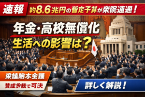 - 約8.6兆円の暫定予算が衆院通過!生活への影響は?年金・高校無償化の行方をわかりやすく解説