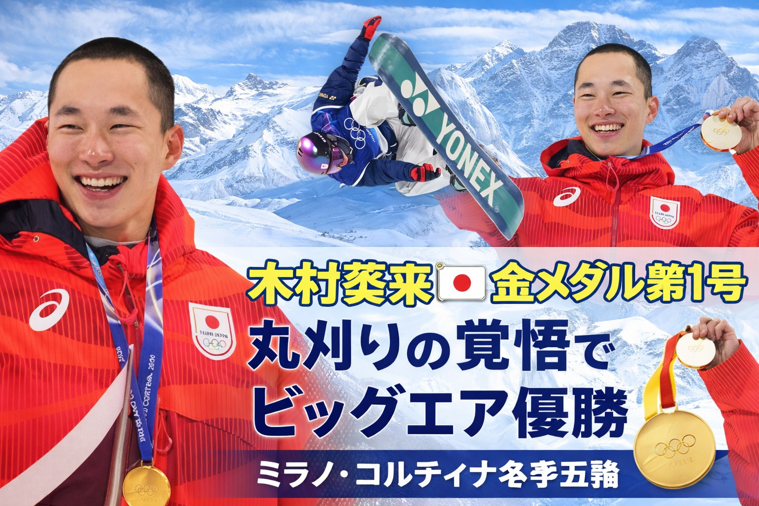 丸刈りの覚悟が空を切り裂いた――木村葵来、金メダル第1号!―ミラノ・コルティナ冬季五輪 スノーボード男子ビッグエア