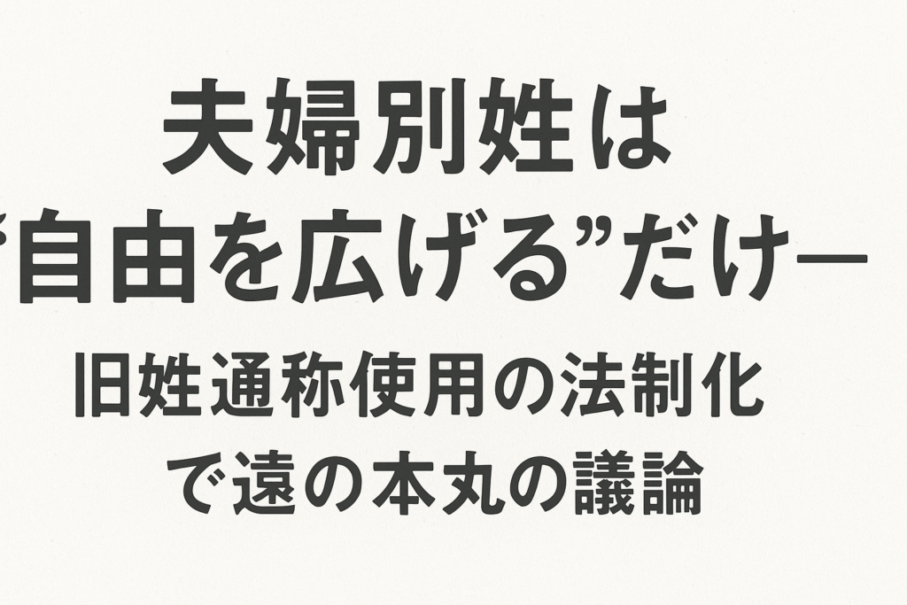 もちろん、旧姓を通称として使いやすくする仕組み自体は、多くの人の日常の不便を軽減する意味で“悪いことではありません”。