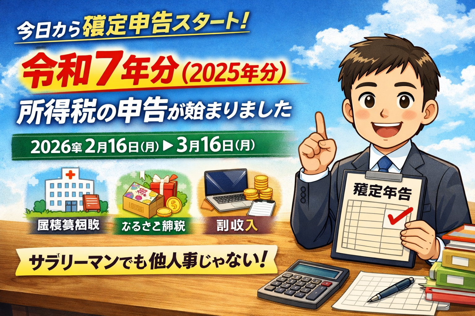 今日から、令和7年分(2025年分)の所得税の確定申告が始まりました。