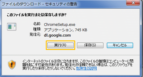 4.「実行」ボタンをクリックします。