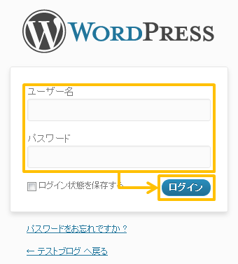 このページは管理画面にログインする際に利用しますのでブックマークしておくといいでしょう。