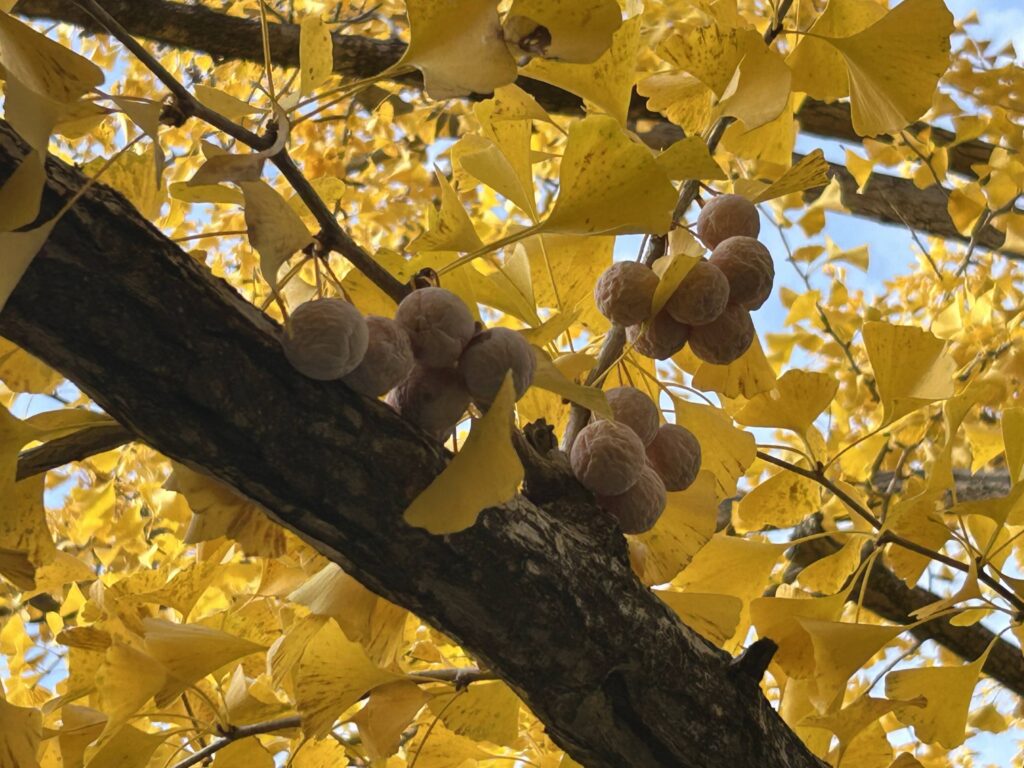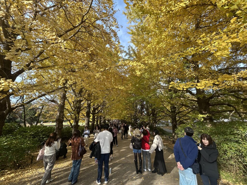 さらに進むと、イチョウ並木のエリアが一段と輝きを増していました。背の高い木々がまっすぐ伸び、その下を黄色のじゅうたんが覆っている光景は圧巻です。風が吹くたびにひらひらと舞い落ちる葉が視界を飾り、歩くたびにサクッとした音が心地良く響きました。まるで映画のワンシーンの中を歩いているような気分になり、家族も思わず笑顔に。自然と写真を撮る回数も増えました。