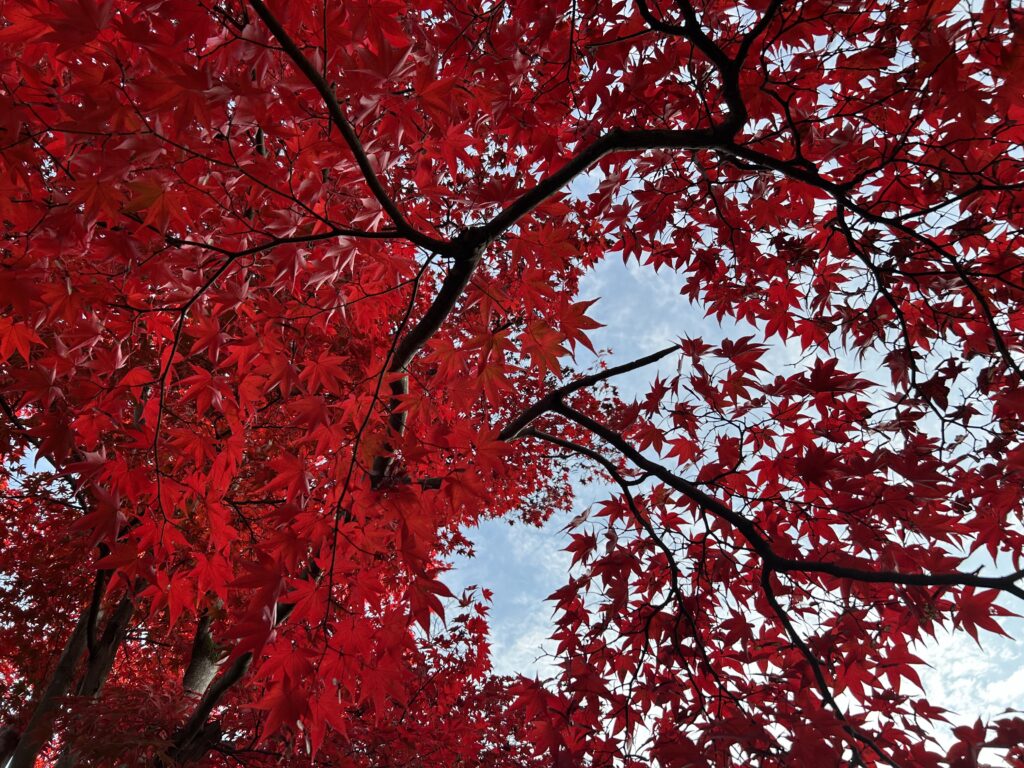 特に印象的だったのは、紅葉の赤とイチョウ並木の黄金色のコントラスト。太陽の光に照らされた葉がキラキラと輝き、歩いているだけでまるで絵画の中に迷い込んだかのような気分になりました。写真を撮る手が止まらないほど、どこを切り取っても絵になる風景ばかりです。